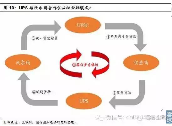 UPSC的供应链金融服务使得沃尔玛避免了和大量出口商逐个结算的交易成本,帮助供应商缩短了账期。同时扩大了UPS市场份额,在物流服务和金融服务上同时获益。
