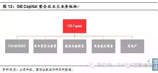 GE Capital是GE旗下专门从事金融服务的部门,经过不断的调整整合,把散布在其他业务板块中的金融业务基本都聚集到一个单独的金融资本板块。整合完成后,GE Capital旗下共包括五大业务模块:GE MONEY、商业贷款与租赁、能源金融服务、商务航空服务、房地产。