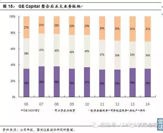 经过多年在供应链金融中的积累沉淀,GE Capital已经由单纯服务产品销售的协作部门转变为专业的金融服务部门,并且在集团中具有重要地位。GE Capital收入占比一直在30%上下,是GE重要的利润来源,根据2014年报,GECapital的利润占比达到了37.8%。