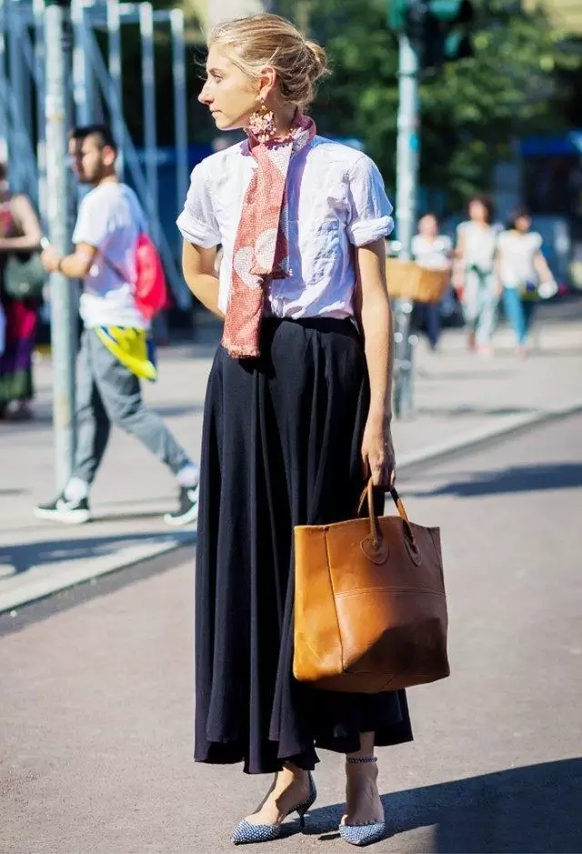 喜欢带点法式不羈与随性的女孩,可以利用舒适的亚麻上衣与长裙,Kitten heels轻松地製造出高雅的态度,在领间系上一条特色围巾,带著复古托特包,就可以出门了。