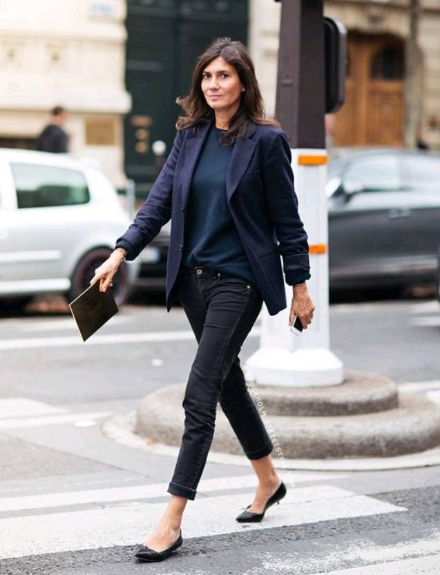身為高阶主管的你,不一定要常常穿上一双恨天高才能展现出你的霸气。利用西装外套,内搭简单的T-Shirt和牛仔裤,也能让你的气燄十足,同时,再搭上一双平易近人的kitten heels也较能拉近你与同事间的距离。