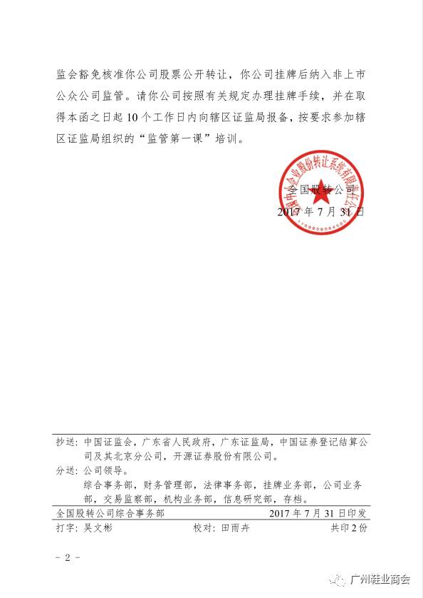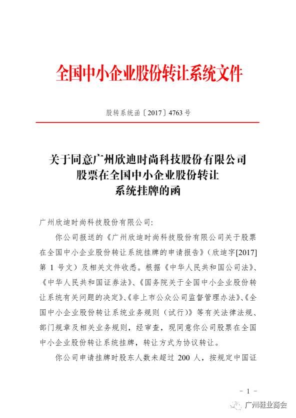 热烈祝贺广州鞋业商会副会长企业-广州欣迪时尚科技股份有限公司正式拿到挂牌上市函,股票代码872119!